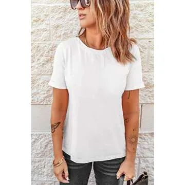 Show moreIntroducing the BINLIANG Women Summer Casual Short Sleeve Tee Shirt, a must-have addition to every woman's wardrobe! This chic yet comfortable tee, crafted from lightweight and ultra-soft fabric, is designed to hug your skin without sacrificing breathability. Its loose-fitting silhouette and stylish rolled cuffs elevate the classic t-shirt into a versatile piece that seamlessly transitions from casual outings to more polished looks. Available in a timeless white color, this shirt is perfect for layering or wearing alone, making it an ideal companion for jeans, skirts, or even beneath a trendy blazer.