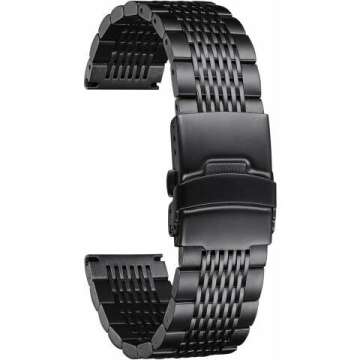 The BINLUN Stainless Steel Watch Band comes in multiple sizes (18mm, 20mm, 22mm, and 24mm) and is designed to fit a wide range of watch types and brands.