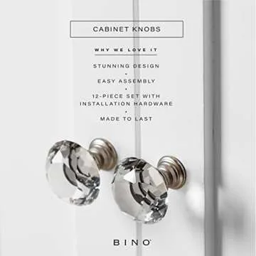 Elevate your home's interior with the stunning BINO 12-Pack Crystal Cabinet Knobs. Crafted with exquisite precision, these round 1.25” clear cut crystal knobs shine like jewels against a sleek satin nickel base, making them the ideal choice for those looking to add a touch of luxury and sophistication to their decor. Perfectly designed to brighten up outdated furniture, these knobs effortlessly transform your cabinets, dresser drawers, cupboards, and bookcases, offering a unique way to...