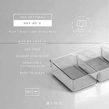 Unlike many generic organizers, the BINO 3-Compartment Drawer Organizer stands out due to its thoughtful design and superior quality. While competing products may offer similar compartment sizes, they often lack the non-slip features and sturdy build that ensure long-term satisfaction. BINO's transparent material not only offers visibility but is also easy to clean, giving it an edge in both functionality and aesthetics. You will find that our organizers cater to various personal tastes and needs without compromising on style or practicality.