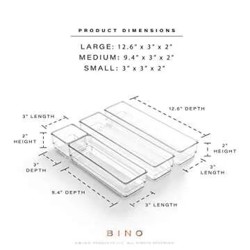 Why You Will Love This Product?The BINO drawer organizer bin set isn't just about keeping things tidy; it’s about enhancing your daily routine. Imagine starting your morning without the frustration of digging through drawers. These bins simplify your life by making every item easily accessible, turning chaos into calm. With their sleek design and functionality, they don't just organize; they elevate your spaces, adding an elegant touch that complements your décor. You’ll love how they contribute to a peaceful and organized environment in your home.