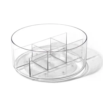 Show more Introducing the BINO Plastic Round Turntable Organizer, a versatile and stylish solution designed to keep your spaces neat and clutter-free! Measuring an ideal 11.25" in diameter, this round organizer features five designated compartments that can conveniently spin around, making it simple to classify and access a wide variety of items. Whether you're looking to tidy up your spice collection, snacks, medicine, pet food, or even tea bags, this organizer becomes your go-to storage companion. Crafted from BPA-free premium-quality plastic, it promises an odor-free and lightweight experience, ensuring your organization journey remains hassle-free.