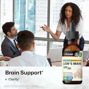 BIO KRAUTER Lions Mane Liquid Extract - Mushroom Supplement for Brain Support - Vegan Lions Mane Supplement - Alcohol & Sugar Free Drops - 2 Fl.Oz.