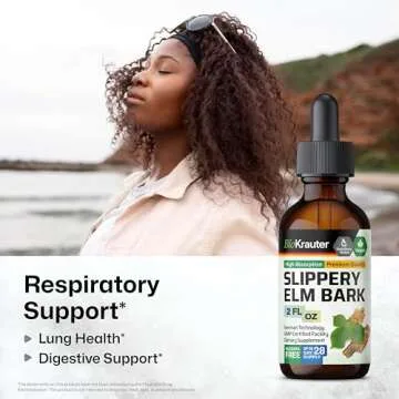 Show more Discover the potent benefits of BioKrauter's Liquid Slippery Elm Drops, an exceptional solution for enhancing gut health. Formulated from Ulmus rubra, commonly known as slippery elm bark, these drops aid digestion and promote overall gut wellness. With a perfect blend of vegan ingredients, this tincture stands out as a non-GMO alternative, free from alcohol, artificial colors, and flavors, making it ideal for a wide range of lifestyles.