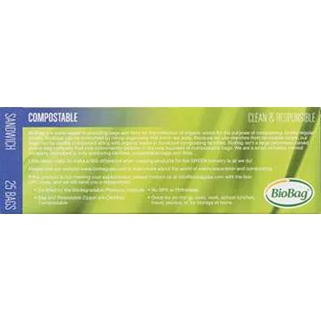 BioBag 100% Certified Compostable Resealable Sandwich Bags, 25 Count, Perfect for Lunches, Snacks, and On The Go Green