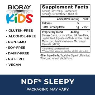 BIORAY Kids NDF, Maple - 2 fl oz - Through The Night - Non-GMO, Vegan, Gluten Free - 1-2 Month Supply