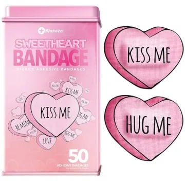 Show moreBring a smile to your child's face with BioSwiss Valentine Heart Shaped Self Adhesive Bandages. These fun and colorful bandages are not just about healing wounds; they're about making the process a little brighter. Perfect for minor cuts, scrapes, and burns, each bandage features a cute Valentine heart design with "Kiss Me" messages, making them a hit among kids and even adults. The 50-count pack includes 4 assorted styles, ensuring variety and fun in every use. Made from sterile, latex-free, and breathable material, these bandages are safe for sensitive skin, providing comfort and flexibility. The absorbent, non-stick pad cushions the wound, preventing sticking and allowing for easy application of creams. Individually wrapped for hygiene and convenience, these bandages are a must-have for home first aid kits, school nurses, and pediatric doctors.
