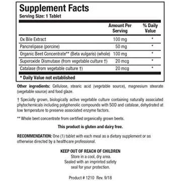 Show moreExperience the powerful benefits of Biotics Research Beta-Plus™, the revolutionary nutritional supplement expertly designed to promote healthy cholesterol levels and enhance fat digestion. Crafted using a blend of the best scientific research and natural ingredients, Beta-Plus supplies the essential nutrients that support optimal cholesterol and triglyceride conversion and utilization. Each serving delivers 100 mg of ox bile extract, combined with pancrelipase and organic whole beet concentrate, making it a remarkable aid for those with low bile production, especially individuals without gallbladders. With 180 tablets in each bottle, you'll have ample support on your journey towards superior digestive health.