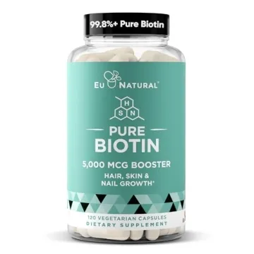 Show more Unlock the secret to luminous hair, flawless skin, and resilient nails with the revolutionary Eu Natural Biotin 5000 MCG! This premium beauty supplement is expertly crafted to deliver a powerful dose of Biotin that invigorates your natural beauty from the inside out. Each vegetarian soft capsule is designed not only to support healthy hair growth but also to enhance skin radiance and fortify nail strength. With a remarkable purity level of 99.8%+, you can rest assured that you're receiving one of the purest forms of Biotin available on the market today.