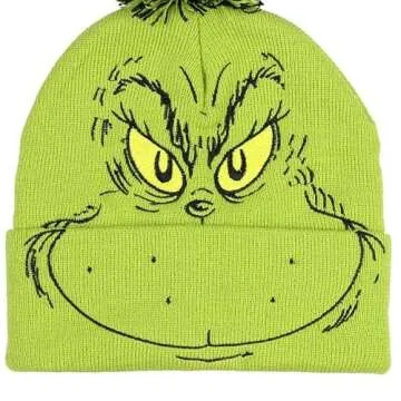 Bioworld Dr. Seuss The Grinch Who Stole Christmas Pom Beanie Hat Embroidered Character,Green,One Size