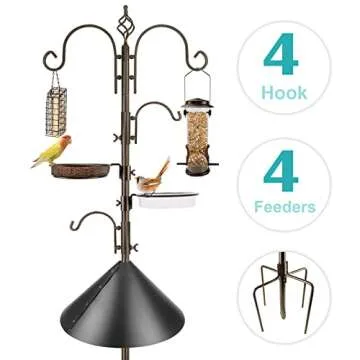 Bird Feeding Station Kit with Squirrel Baffle and Suet Cage Wild Bird Feeder Kit with Mesh Tray, Fruit Hook, and Double W Hook for Attracting Wild Birds