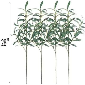 Bird Fiy 4PCS Artificial Olive Plants Branches Fruits Branch Leaves Indoor Outside Home Garden Office Wedding Décor