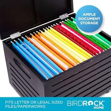 BIRDROCK HOME Bamboo Rolling File Storage Organizer Box with Lid - Decorative File Cabinet on Wheels, Portable File Box on Wheels, Mobile Filing Solution - Grey