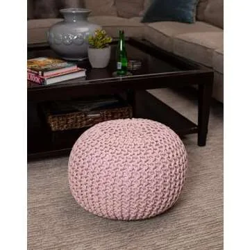 BIRDROCK HOME Round Pouf Ottoman | Cotton Braided Foot Stool with Bean Bag Filling | Boho Foot Rest for Living Room & Bedroom | Compact & Comfortable Seating, Lightweight & Soft | Dusty Rose
