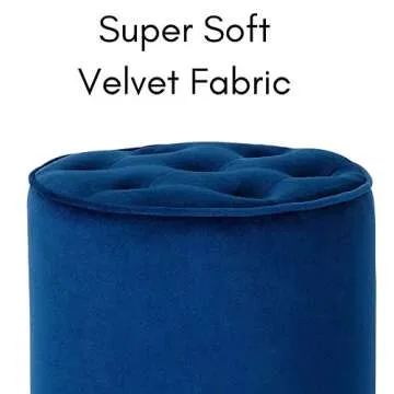 BIRDROCK HOME Tufted Navy Velvet Ottoman Foot Stool – Round - Soft Compact Padded Stool - Great for The Living Room, Bedroom and Kids Room - Upholstered Small Furniture