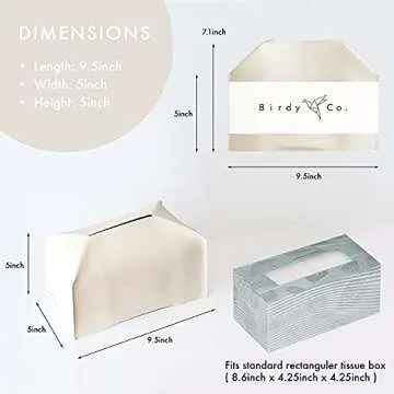 The dimensions are 9.5in (L) x 5in (W) x 5in (H), designed to fit standard Kleenex boxes.