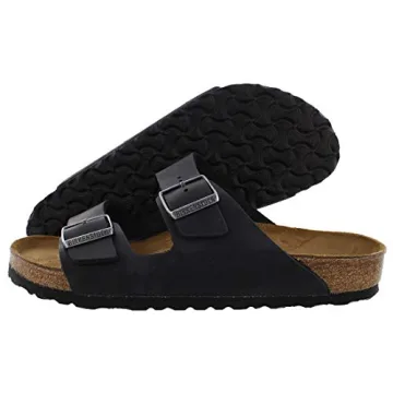 Show moreStep into comfort and style with the Birkenstock Unisex Arizona Sandal in Black Oiled Leather. Designed for those who value both aesthetics and foot health, these sandals feature a durable cork sole that molds to your feet over time, providing personalized support. The adjustable buckles ensure a perfect fit, while the Birko-Flor upper offers a smooth, leather-like finish that's both stylish and easy to maintain. Lined with a soft fabric, these sandals promise comfort from the first wear. The anatomically correct cork footbed is designed to promote foot health, making these sandals a smart choice for anyone looking to combine fashion with functionality.
