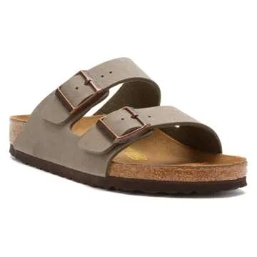 Show moreStep into unparalleled comfort with the Birkenstock Unisex Arizona Sandal, expertly crafted in a stunning Stone Birkibuc that combines durability and style. Designed for long-lasting wear, these sandals feature a punched EVA sole that provides a lightweight and cushioned feel with every step. The iconic design showcases two adjustable straps, each adorned with elegant metal logo buckle closures, allowing for a customized fit that ensures both stability and style. The versatile color and classic design make them the perfect companion for any summer outfit, whether you're running errands or enjoying a day out in the sun.