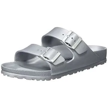 Birkenstock Women's Arizona Sandals, Metallic Silver, 9 Medium US