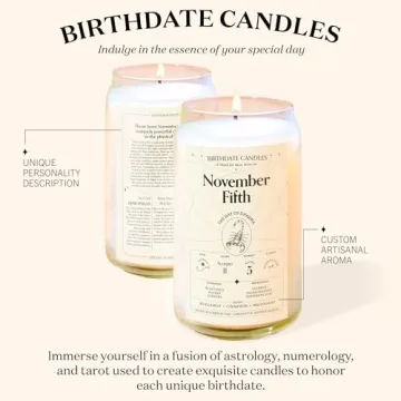 Show more Introducing the **November Fifth Birthday Candle**, a celestial gift that captures the essence of Scorpio. Born under the transformative influence of Pluto and the dynamic energy of the number 5, individuals born on this day possess an incredibly strong and passionate connection to the physical universe. Each candle is meticulously crafted to reflect this complexity, delivering a unique fragrance that resonates with the imaginative souls who celebrate their birthday on November 5th. Crafted with sophistication in mind, this candle doesn’t just illuminate a room; it awakens the senses and enhances the connection to one's inner self through its carefully curated scent profile.