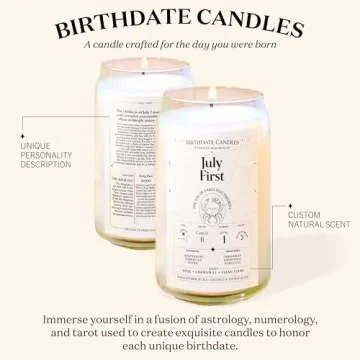 Birthdate Personalized Candle - 13.5oz Long-Lasting Zodiac Scented Candles, Custom Candle Birthday Gift for Women & Men - All-Natural Soy & Coconut Wax Blend, 60-80 Hour Burn Time, Made in USA