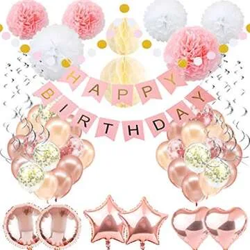 Birthday Decorations Balloon Banner – Rose Gold Happy Birthday Decoration, Happy Birthday Banner, 16th 18th 21st 30th 50th 60th Birthday Balloons Birthday Party Decoration for Women girls