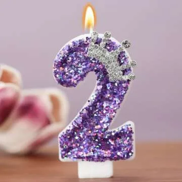 Birthday Number Candles,Purple Crown Birthday Candles for Cake,Glitter Number 2 Candle Cake Topper with Sequins for Anniversary Celebrations Supplies (Number 2)