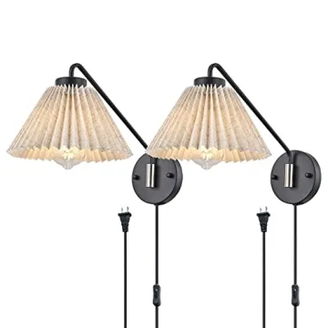 Show moreIntroducing the BISAMIYA Upgraded Foldable Wall Lamp Set of 2, a perfect blend of elegance and functionality that elevates any space with its modern design. Crafted from high-quality baking varnish metal and featuring a sophisticated beige conical fabric lampshade, these lamps are not just sources of light but stunning decor elements. Their matte black canopy juxtaposed with brushed nickel accents creates an eye-catching aesthetic that fits seamlessly into any interior style. Whether you’re looking to illuminate a cozy reading nook, accentuate your living room, or enhance hotel aesthetics, these lamps deliver both style and performance.