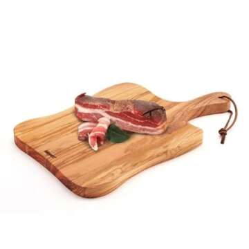When compared to other cutting boards on the market, the Bisetti Rustic Olive Wood Board stands out due to its superior quality and commitment to sustainability. While many boards are made from cheaper materials, this cutting board is crafted from solid olive wood, which is not only more beautiful but also ensures longevity and resilience against wear. Unlike generic boards, the unique grain patterns of each one make it a truly one-of-a-kind piece for your kitchen.