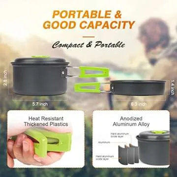 Bisgear 16pcs Camping Cookware Backpacking Stove Mess Kit – Camping Cooking Set - Camping Pots and Pans Set - Camping Accessories Equipment - Backpacking Supplies Survival Gear