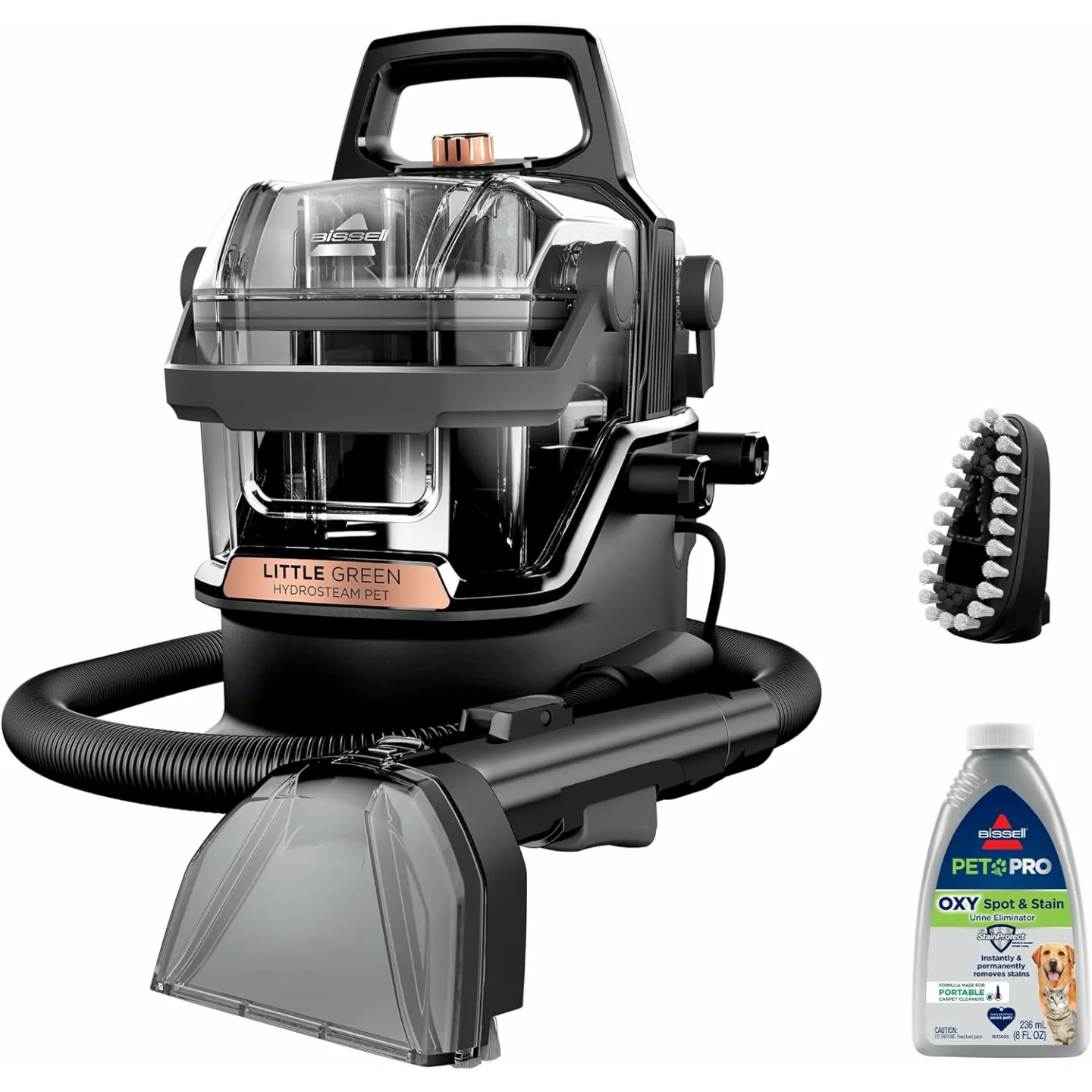 Show moreThe BISSELL Little Green HydroSteam Multi-Purpose Portable Carpet and Upholstery Cleaner is a versatile and powerful cleaning machine, perfect for maintaining the cleanliness of your home, car, and upholstery. Available at the Amazon Home & Kitchen Store, this product is offered by Bissell, a trusted name in cleaning solutions, at an affordable price. Highlighted with a sleek black and copper harbor color scheme, it delivers both functionality and style. The Little Green HydroSteam features a quick heating system, making it ready to dispense steam in seconds for effective cleaning. It is designed for easy maneuverability, ensuring that you can tackle even the most difficult-to-reach spots. With powerful suction to remove dirt, pet stains, and grime, the cleaner efficiently lifts away the mess, leaving your surfaces looking fresh and clean. Despite a few minor shortcomings highlighted in reviews, such as the need for a longer cord and better brush head attachment, the overall consensus is that this cleaner stands out for its convenience, performance, and ability to handle tough cleaning tasks.