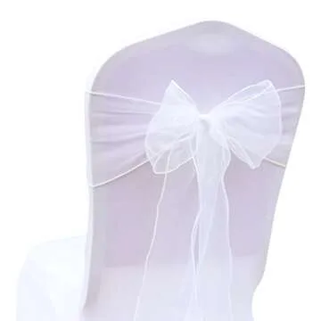 BIT.FLY 25 Pcs Organza Chair Sashes for Wedding Banquet Party Decoration Chair Bows Ties Chair Cover Bands Event Supplies - White