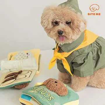 Show moreIntroducing the BITE ME Woof Woof Scout Nosework Toy – a delightful interactive plush toy designed specifically for small and medium-sized dogs. This engaging toy combines the excitement of a squeaky sound, crinkly textures, and the joys of a hide-and-seek game all within a single, charming book. Your furry friends will adore the plush puppy toy, cleverly attached to the front page, making it an irresistible addition to their playtime.