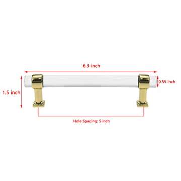 Bitray 5PCS Acrylic Cabinet Pulls 5 Inch Gold Base Drawer Dresser Pulls Bar Pull Drawer Handles