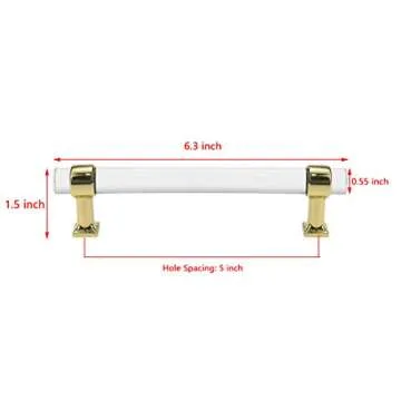 Show moreElevate your furniture's aesthetic with the Bitray 5PCS Acrylic Cabinet Pulls. Expertly crafted for durability and style, these 5-inch drawer handles blend modern design with practicality, making them an ideal choice for any home. Their clear acrylic construction offers a touch of elegance while the lustrous gold base provides a stunning contrast that adds a luxurious feel to cabinets, dressers, and drawers. Easy to install, these pulls can transform your furniture effortlessly, reflecting a unique personality and taste.