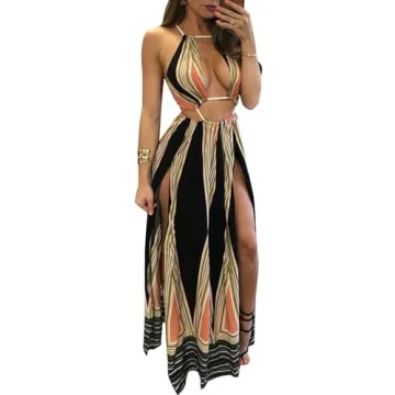 BIUBIU Sexy Boho Floral Halter Maxi Dress - Beach Party Split Cover Up 2024
