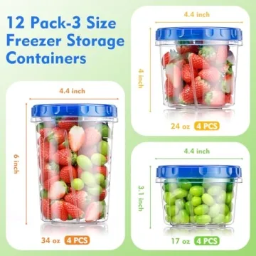 Show moreIntroducing the BiuLeon 12 Pack Freezer Storage Containers, your ultimate solution for efficient kitchen storage! This thoughtfully curated set features three different sizes: 4 packs of 34 oz, 4 packs of 24 oz, and 4 packs of 17 oz. Whether you're preparing meals in advance, storing leftovers, or packing snacks for a picnic, these versatile containers are designed to meet all your food storage needs. Constructed from high-quality, food-grade materials and BPA-free, these containers promise safety, durability, and an unbeatable user experience.
