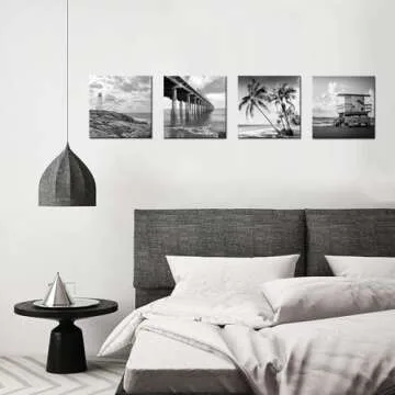 Show moreTransform your living space with the stunning **Biuteawal 4 Piece Wall Art**, featuring breathtaking black and white depictions of Florida’s coastline, a lighthouse, a lifeguard tower, and serene beach scenes. Each piece measures **12" x 12"**, making them the perfect fit for any room, especially your bathroom, where they create a coastal-themed oasis that’s both modern and artistic. Crafted from **100% premium canvas**, these multi-panel prints ensure durability and elegance, delivering an eye-catching statement that invites peace and serenity into your home. Whether you’re enhancing your decor or gifting a loved one, this wall art encapsulates the essence of beach life, inviting lifelong memories of seaside relaxation.