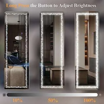 Biyatuos 63" x 20" Full Length Mirror with LED Lights, Full Body Mirror with Poker Pattern Light, Free Standing Mirror, Wall Mounted Hanging Mirror & 3 Color Lighting(White)