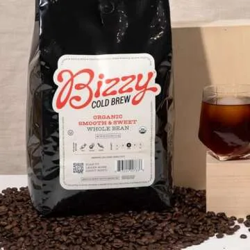 Bizzy Organic Cold Brew Coffee | Smooth & Sweet Blend | Whole Bean | Medium Roast | 100% Arabica | 5 LB