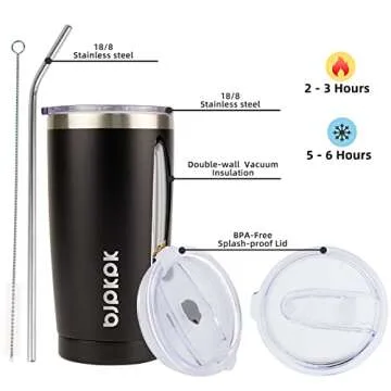 BJPKPK 20 oz Tumbler with Lid and Straw Insulated Travel Coffee Mug Reusable Stainless Steel Thermal Cups,Black
