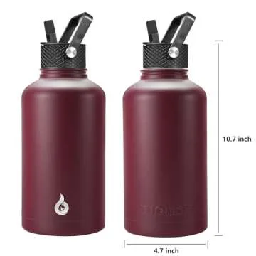 BJPKPK Half Gallon Insulated Water Bottles with Straw Lid, 64oz Large Water Jug, Stainless Steel Bottles with 3 Lids and Paracord Handle, Thermos for Hot & Cold Liquid, Brick Red
