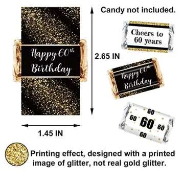 Black and Gold 60th Birthday Party Mini Candy Bar Wrapper Stickers - 60th Birthday Party Favors-60th Birthday Stickers- Pack of 54 Stickers
