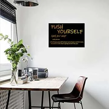 Black and Gold Wall Art School Motivational Quotes Push Yourself Canvas Print Classroom Inspirational Picture Wall Art Living Room Office Framed Golden Artwork 12x16inch