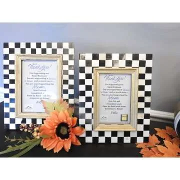 Black and White Checkered Handmade Buffalo Horn Bone Inlay Picture Frame (5" x 7" Gold Trim)