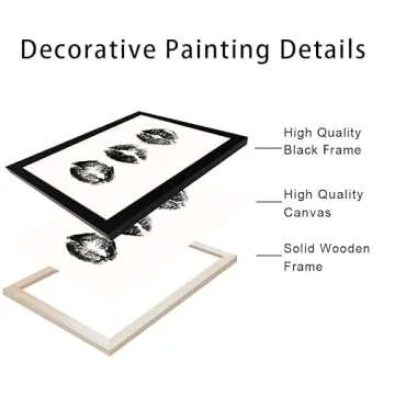 Black and White Kiss Lips Wall Art Framed Woman Makeup Room Wall Art Fashion Preppy Dorm Trendy Print Poster Funky Make Up Wall Art Girly Bathroom Decor