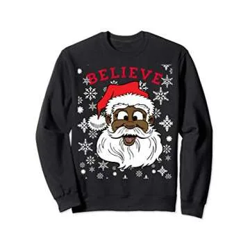 Black Believe Santa Fun Silly Santa African American Santa Sweatshirt