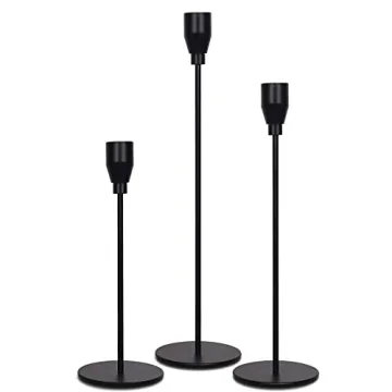 Show moreEnhance your home decor with the enchanting Black Candle Holder Set of 3, perfect for creating a romantic atmosphere for any occasion. Crafted from high-quality wrought iron, these candlestick holders symbolize exquisite artistry and durability. Their sleek matte finish instantly elevates your aesthetics, making them an ideal centerpiece for intimate dinners, parties, or festive celebrations. Designed to accommodate taper candles with a diameter of up to 0.85 inches, this set includes three varying heights (8.8", 10.8", and 12.8") that add dimension and elegance to your decorating scheme. Each holder can be easily assembled in just two minutes, offering convenience without sacrificing style.