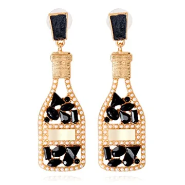 Black Champagne Bottle Earrings for Women Margarita Tequila Earrings Crystal Cocktail Wine Glass Dangle Earrings Party Celebration Jewelry Gifts