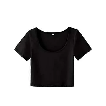 Black Crop Tops for Women Cute Crop Tops for Teen Girls Baby Crop Tees Short Sleeve Basic Crop Tops T Shirts for Women Black Medium